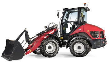 The 9,370-pound machine fills the gap in the Yanmar wheel loader line between the V4-7 and the V8 and features a low operating weight, comfortable cab area and high bucket capacity. Its compact design, intuitive controls and high travel speeds maximize performance and efficiency for operators in landscaping, rental, municipalities, snow removal and other applications.