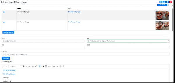 Once it is time for the equipment to be picked up, the driver arrives on site and performs his walk-around, taking pictures to compare to the delivery pictures. Back at the yard and the check-in process is complete. At this time, your service department can review, and if there is damage that was not previously reported and is deemed appropriate, you can now send the customer the pickup photos along with a repair estimate.