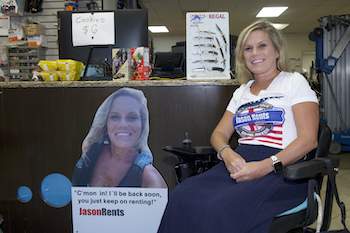 Some near-term challenges face the staff at Jason Rents. Jackson suffered a serious pelvic injury in a Jet Ski accident in March and is working hard to recover from it. She has been limited in her time to work in the store, so her father and staff have stepped up to cover for her.