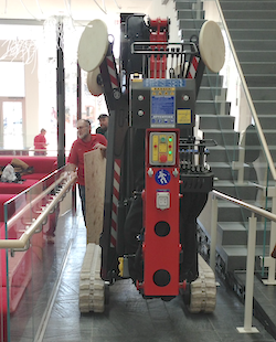 The greatest benefit to new indoor MEWPs, specifically the CTE Traccess, is compactness. Most spider lifts can fit through a standard door but require the door to be taken off to avoid damage. Being able to fit through a standard doorway without taking the door off its hinges is crucial to working indoors. All CTE lifts are equipped with retractable tracks allowing even them to become about 31 inches wide in travel mode.