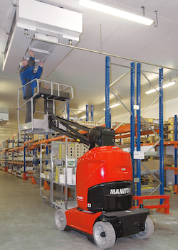 Indoor mast lifts can make overhead work more productive and safer for workers. |